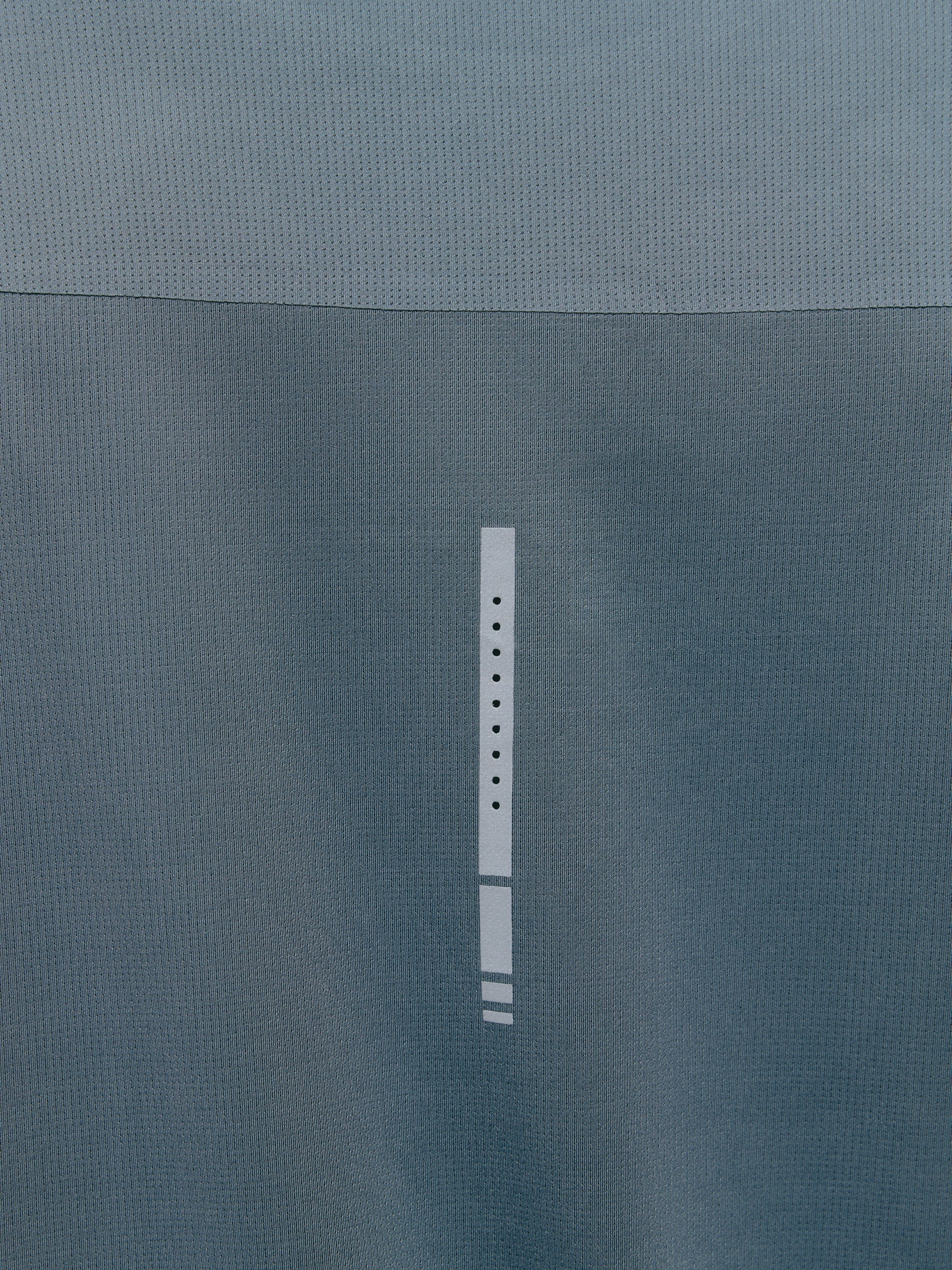 Camiseta con costuras y acabados termosellados. Tejido “Fly-Tech”, ligero y fluido. Combina tejido mesh en la espalda y en los laterales. Tiene microholes en axilas para aportar mayor transpirabilidad. Print reflectante en la espalda.